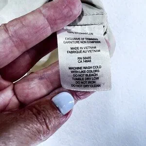 Very good pre-owned condition. Missing one button on the sleeve just above the cuff.