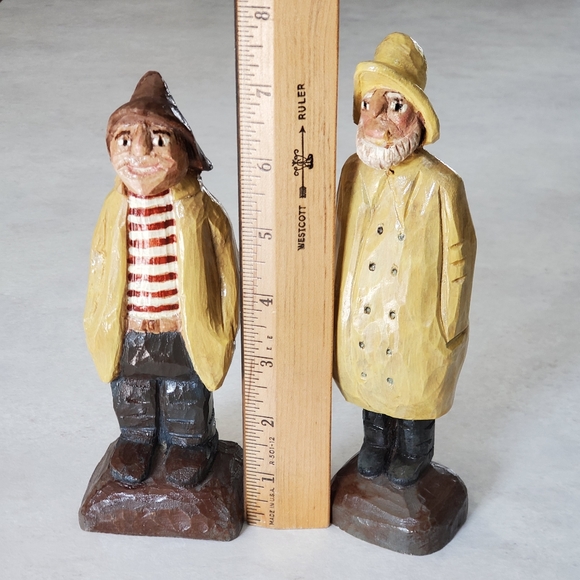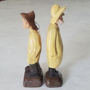 Pair of Handcarved Handpainted Wood Fisherman Signed and Dated Vintage
