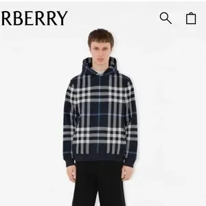 Burberry Check Cotton Hoodie in dark blue and white. Great condition. Only worn a few times.