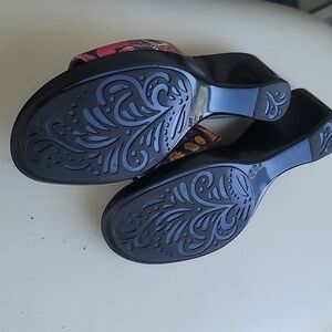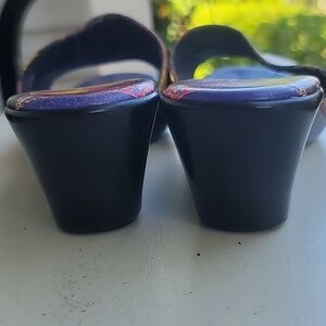 Women's Shoes Sz 6 Purple Painted Leather Open Toe Sandals Slides Wedge Tropical