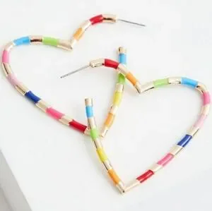 NWT Torrid Celebrate Love Rainbow Enamel Heart Hoops goldtone 2” length