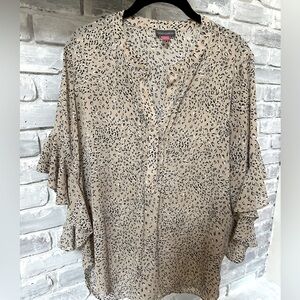 Vince Camuto 3/4 flutter sleeve blouse with pin tuck detail and partial button down the front. Blouse is in excellent condition.
