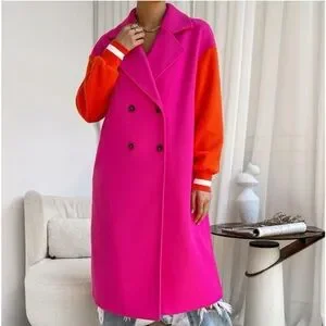 Classic Colorblock Double Breasted Lightweight Pea Coat