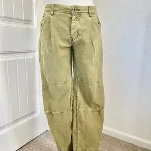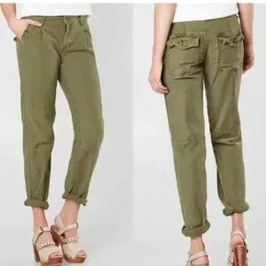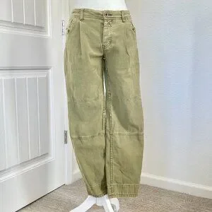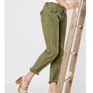 FREE PEOPLE High-Rise Button-Fly Moss Green Utility Boyfriend Pant Size 25