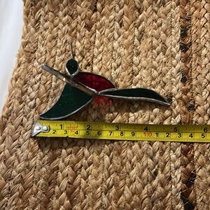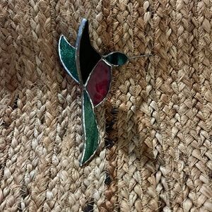 Transform your space with this beautiful HUMMINGBIRD handcrafted with stunning stained glass. Bring a touch of nature and color to any room with this charming hummingbird piece.