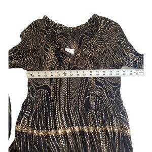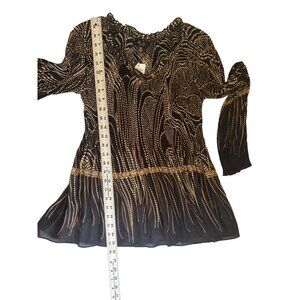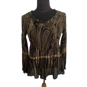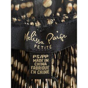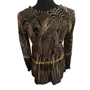 Melissa Paige Petite Women's Long Sleeve Blouse Size P/S Black & Gold Pattern