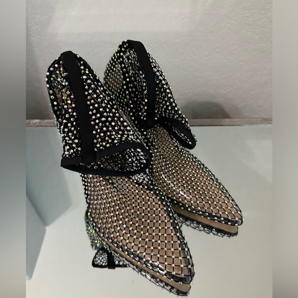 New!! KRYSTAL BLACK DIAMANTE FISHNET HEELS 8.5