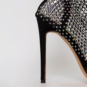 Listen!!! Want to be sure to stand out from the crowd in these one of a kind heels? Featuring fishnet mesh, diamante detail and a stiletto heel, your feet will be the best dressed at the party.
