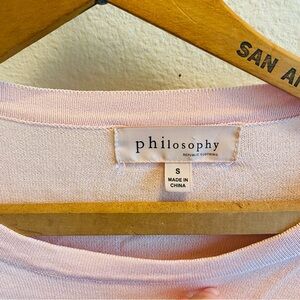Pink bell sleeve pullover top by Philosophy. EUC. All measurements taken flat Size small measures shoulder