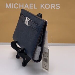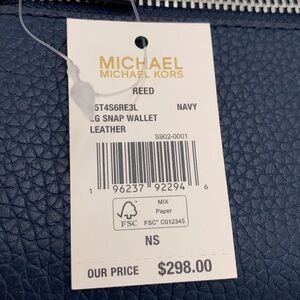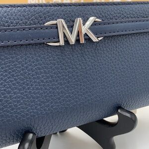 Michael Kors Reed Large Bifold Pebbled Leather Snap Wallet Card Case Navy NWT
