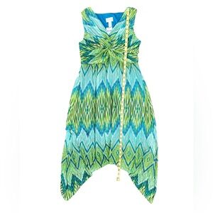 Chico’s Women’s Green Ikat Maida Handkerchief Dress Sleeveless V-Neck Size 0