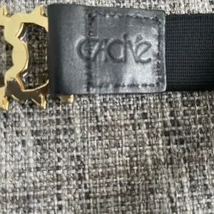 Cache stretch black belt with crystal grey stone”buckle”, gold trim !