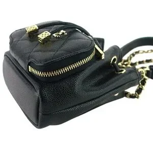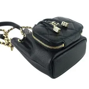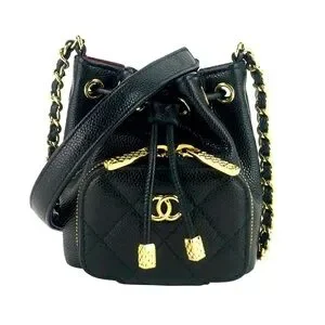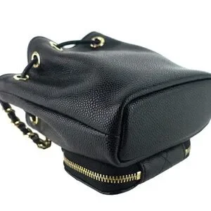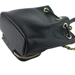 CHANEL Mini CC Black Pocket Caviar Leather Gold Chain & Leather Strap Bucket Bag