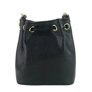 Take luxury with you everywhere you go with this petite bucket bag cut from luxurious caviar leather. It showcases a drawstring closure to keep your belongings secure, a convenient crossbody strap for easy carrying, and dazzling golden hardware for a stylish finish.