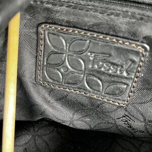 VINTAGE FOSSIL SOFT BLACK LEATHER SHOULDER/HANDBAG SATCHEL SILVER TONE HARDWARE