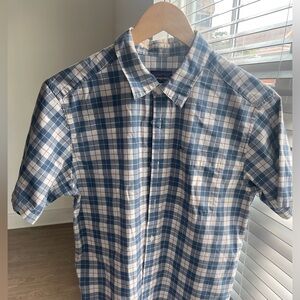 Patagonia Mens Blue Creme Organic Cotton Check Short Sleeve Button Up Shirt US S