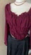 A crepe chiffon blouse featuring a solid color, square ruffled neckline, an allover shirring design, long sleeves with flounce hem, square cut back, and a crop length.