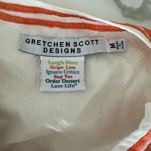 Popular must have staple-Gretchen Scott The Reef Tunic in White and Orange-Size- Medium. Perfect for the beach over your swimsuit or lunch paired with white or navy jeans. Add this basic with a twist (orange) to your summer collection. Great condition!