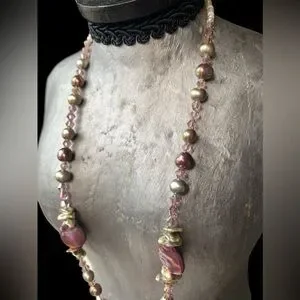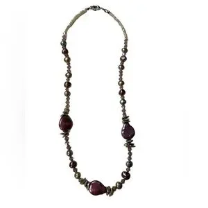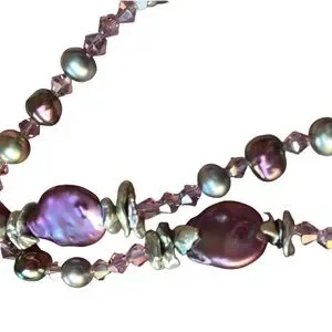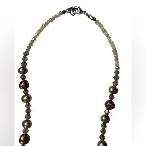 Plum Colored Cultured Pearl & Glass Beaded Woman’s Stunning Necklace Jewelry
