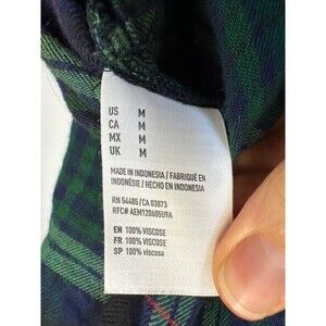 American Eagle Shirt Womens M Green Blue Plaid Button Up Boyfriend Flannel Soft