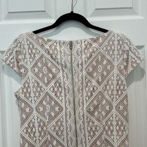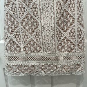 Dark beige fabric with off-white lace overlay. Fully lined silky feel fabric.