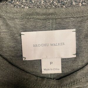 BROCHU WALKER Silk Linen Blend Pocket Tee Size Small Olive Green. Semi-sheer. Gently used preowned condition