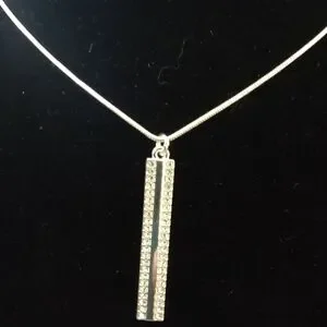 Nine West Rhinestone Silvertone Pendant Necklace Adjustable 18" - 20"