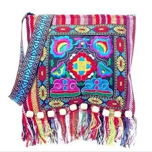 Sparrow Rain Ethnic Bohemian Embroidered Tote Bag Handmade Art 2 Wear Crossbody