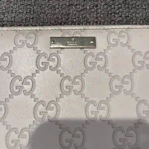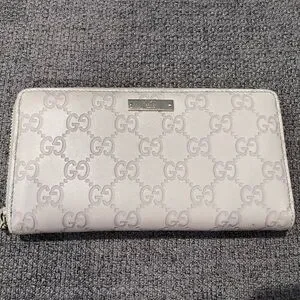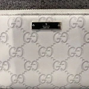 Authentic Gucci Guccissima Ivory Leather long zip around wallet