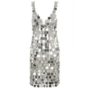 This is a silver Paco Rabanne Sparkle Disks Dress in size 38 FR.