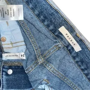 Pacsun colorblock jeans with dark and light blue denim jeans. Button up. Length 26 1/2”. Last picture shows beginning of distressed spot