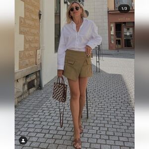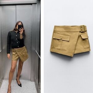 Zara neutral Beige Khaki Tan Cargo Skort Pockets Viral Short Skirt size M