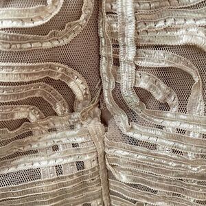 Zip Back, Hook & Eyelet. Flaw - small hole on back in mesh overlay, does not go through the lining, see pictures. Smoke free home.