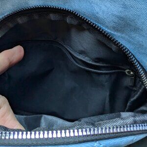 Curved zipper opens to main compartment