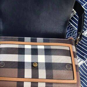 Burberry Women's Note Check-print Coated Cotton Shoulder Bag