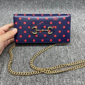 100% Authentic GUCCI Horsebit 1955 Chain Wallet Leather Shoulder Bag