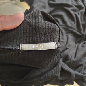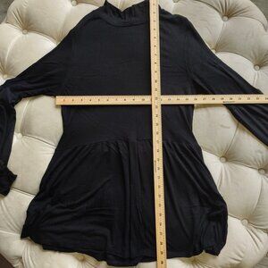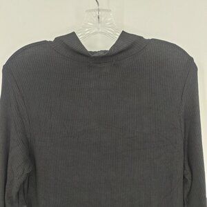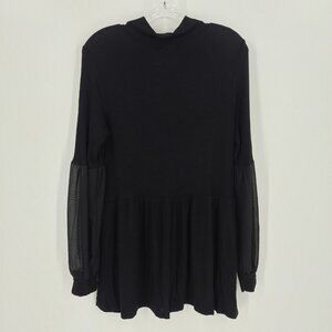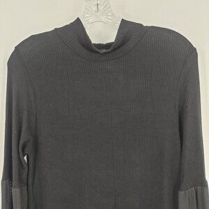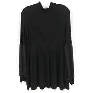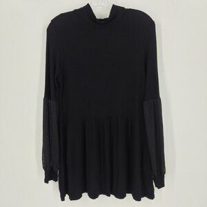 GYFT Sz L Tunic Top Sheer Sleeve Ribbed Knit Mock Neck Black Mini Dress Casual