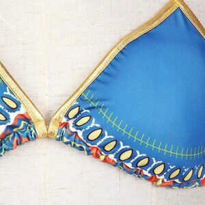Gorgeous Ultra Sexy Goddess in Gold Boho Aztec Print Bikini Swimsuit Strappy NEW