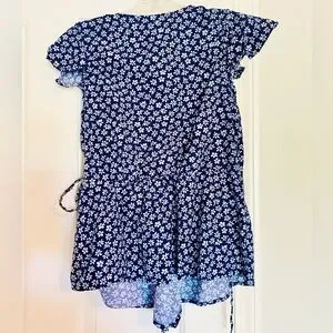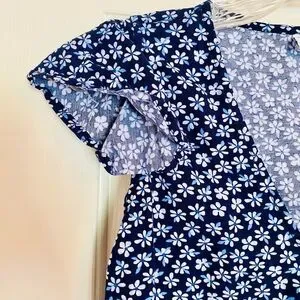 Old Navy Women’s Flutter Sleeve Wrap Top Shirt Dark Blue with Flowers Medium M