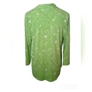 EUC Charter Club Lime Green with white flowers v neck blouse size M. 3/4 sleeve.
