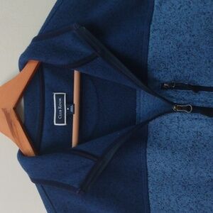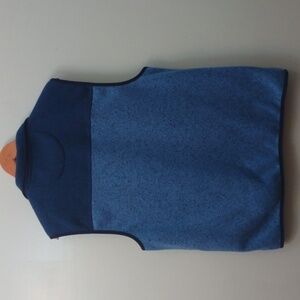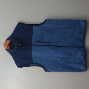 Like new condition. Worn on it's own or layered with other outerwear this is a great lightweight vest for fall/winter/spring. Mottled dark and light blue colors. Details include: metal zippers, 2 side hand warmer pockets, & 1 chest security pocket with zipper closure. No visible wear at all - looks great. Machine washable. Size = Medium.