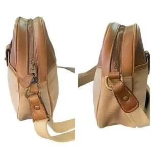 Classic, light weight, yet roomy, our vintage cross body No. 76 is earlier design of Purser bag. Production for this design was stopped in 1991 and later the style was changed to a larger messenger bag, introduced in 1993. Made of our khaki twill and tan saddle leather, this is a must have Crossbody bag for any Ghurka fan. Bag is in great condition, there is some slight staining of canvas from leather.