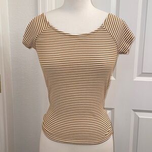 O'NEILL yellow and white striped scoop neck top in women's size Medium