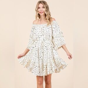 Vici Off The Shoulder Dotted Ruffle Detail Mini Dress