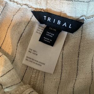 Woman’s shorts size 16/XL. Loose fit, elastic waist. Cream with black stripe. Decorative waist tie.