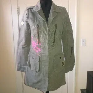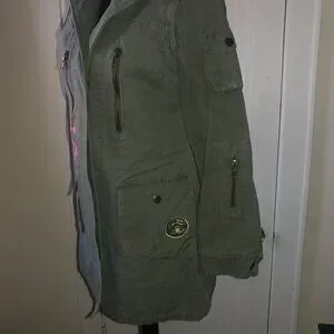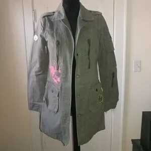 BB Dakota Vintage Olive Green Long Twill Utility Jacket - Size Small