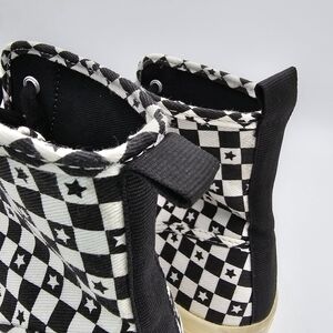 Zara Lace-Up High-Top Canvas Sneakers, Black/White Checkered pattern with stars