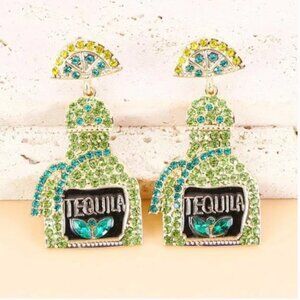 Tequila Party Rhinestone Boho Peasant Hipster Art Pop Earrings