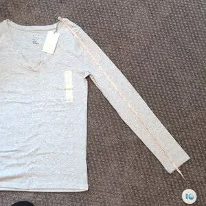 brand new with tags! Light gray V-neck fitted tee with tiny subtle sparkles! (tried to show this in the video) Feel free to let me know if you have any questions