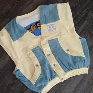 1980s era Uncle Sam sweatshirt and denim material bodybuilding vest. Size large. Preowned good condition. A few small marks on front(see photos). Smoke free home. Soooo RAD!